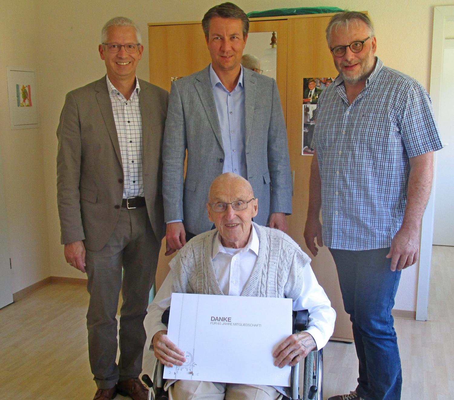 Eine ganz besondere Ehrung konnte der CDU-Kreisvorsitzende Matthias Kerkhoff nun in Meschede-Olpe vornehmen. Ernst Bohne, Jahrgang 1927, ist bereits im Jahr 1954 in die CDU Olpe eingetreten und kann daher auf 65 Jahre Mitgliedschaft zurückblicken. Im Jahr seines Eintritts in die Partei war Konrad Adenauer der erste Bundeskanzler der damals gerade einmal fünf Jahre alten Bundesrepublik Deutschland, der Kalte Krieg teilte Deutschland, Europa und die Welt und die deutsche Fußballnationalmannschaft um Fritz Walter vollbrachte das ‚Wunder von Bern‘ und wurde erstmals Fußball-Weltmeister. Matthias Kerkhoff als Vorsitzender der CDU im Hochsauerlandkreis dankte Ernst Bohne für seine langjährige Treue und Mitarbeit in der CDU und überbrachte auch Gratulationen und Dank der Bundesvorsitzenden Annegret Kramp-Karrenbauer und des Landesvorsitzenden Armin Laschet. Für die Ortsunion Olpe dankten die Ratsmitglieder Dieter Berger und Thomas Jostes dem Jubilar.